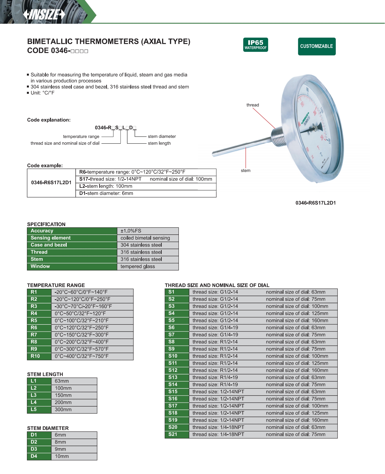 Bimetallic Thermometers (Axial Type)
